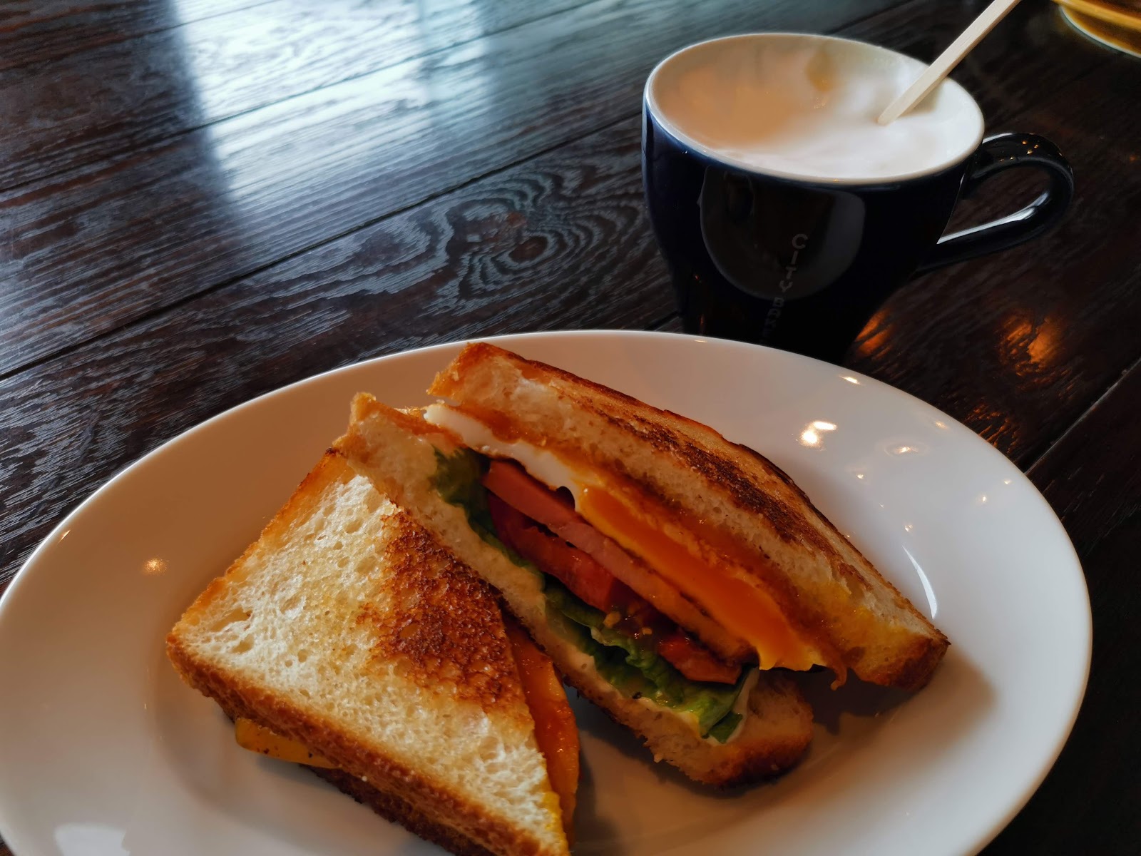 給女兒叫的三文治,材料都算厚啊,不是薄薄的一片,還有杯打到起泡的牛奶,女兒食得津津有味! |